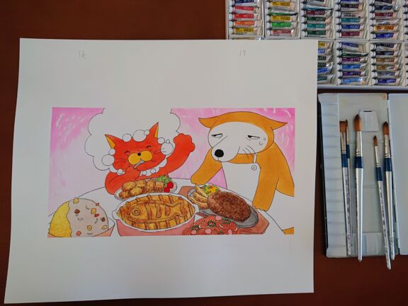 1作を仕上げるのに時間はかかりますが、おスナさんの世界を最も良い形でお届けしたく、一枚一枚筆を進めています。