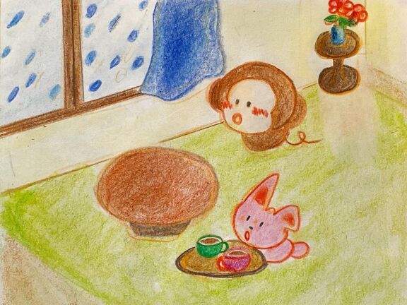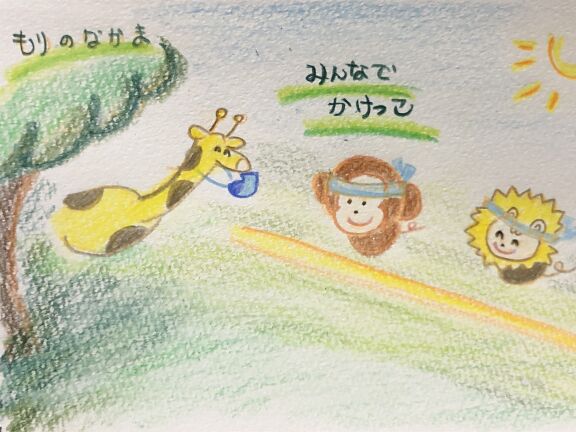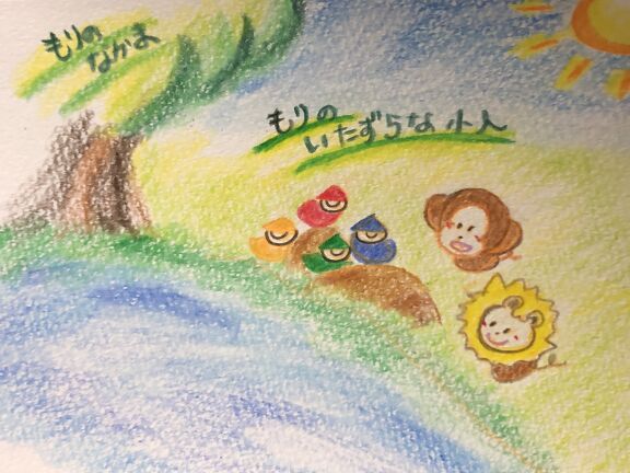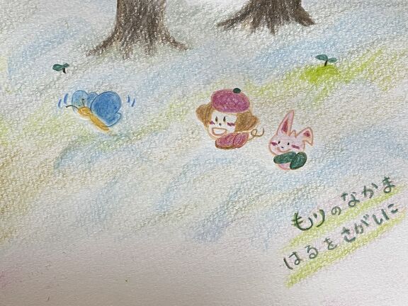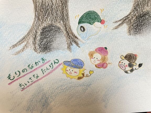 あえて言葉を付けずに、想像してお話を膨らませて語ってあげれるようにしています。色えんぴつだけを使って暖かみとかわいさを出しています。