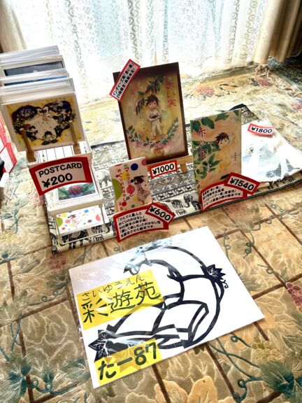 本は「赤い実」の商業版、インディーズ版、(写真はインディーズ版)、「マルマル星人とめぐりのおはなし」のZINEを用意するつもりです。その他、文学作品のポストカードなど予定しています。 -